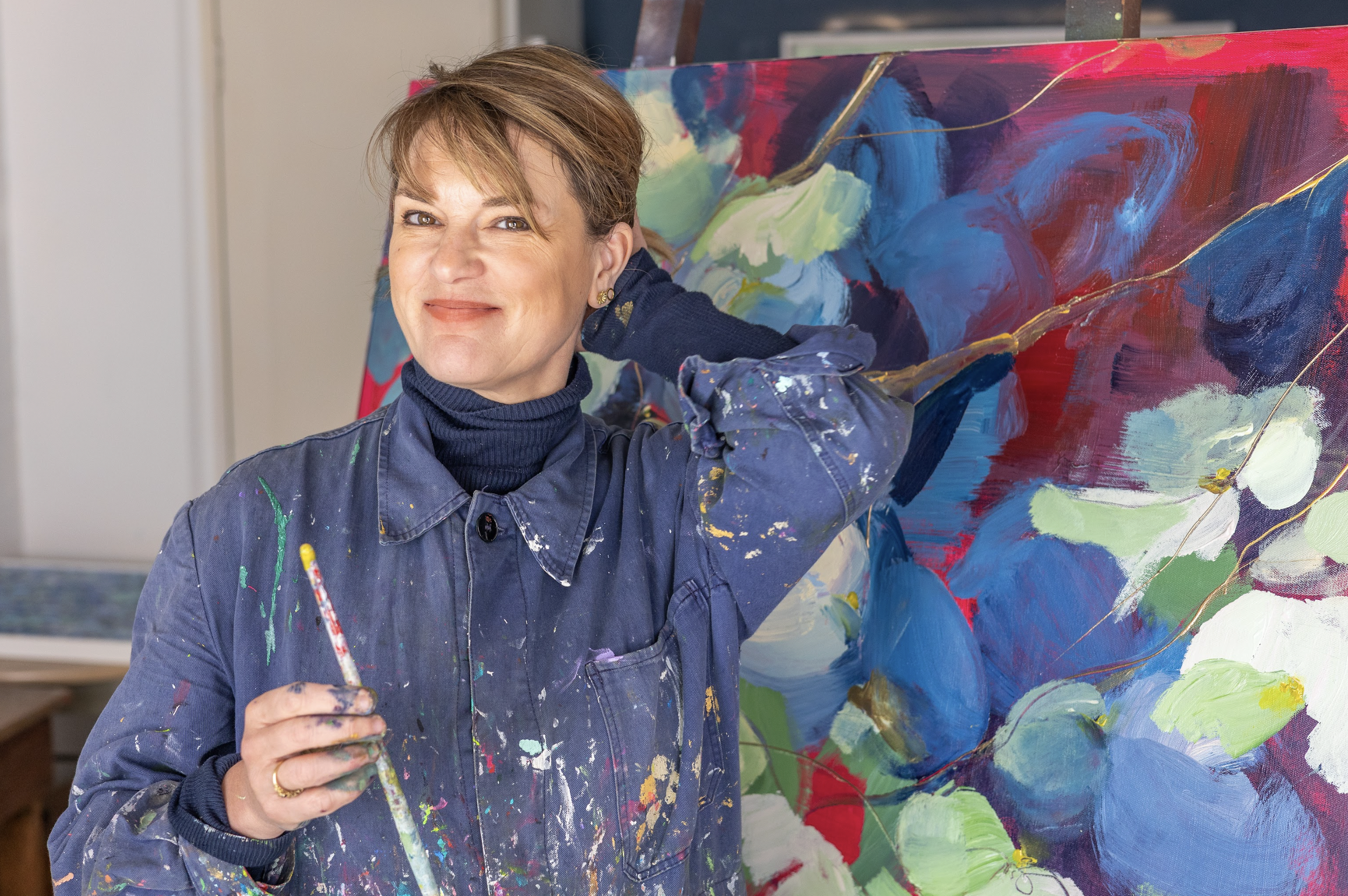 Her flower paintings are in collections all over the world. They are joyful, life-affirming, richly detailed and endlessly fascinating. There is much to discover in the complex, tangled layers of pattern, texture and bold colour.